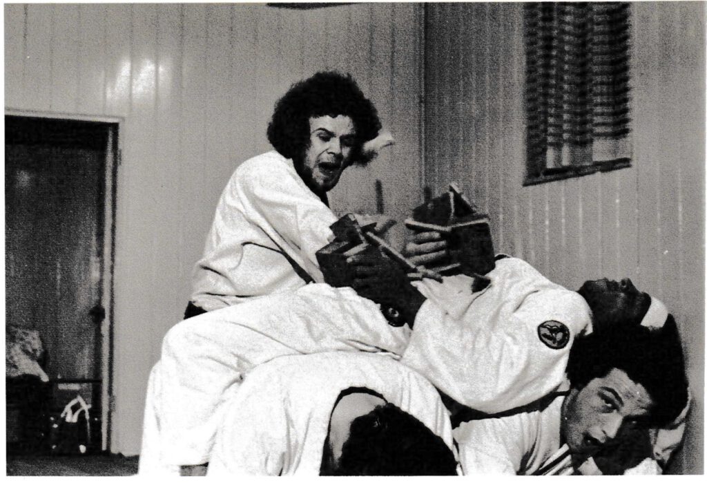 After 5 years of diligent study, I passed my shodan test under Wylie and the late Frank Kelly. At this point I was just turned 18 and ready for university. I took the Cambridge entrance exam and was invited to interview at Selwyn College but was not successful. All my other university applications were to institutions with or near karate clubs of repute. I won a place at Sussex, near Brighton, where Chris Kent was teaching Wado Ryu and kickboxing. The first thing that struck me (literally!) was the skill of Chris’ students at kumite. I was getting schooled by his kyu grades and knew I had to up my game if I was going to justify to myself my black belt rank. My persistence with my karate training was a major factor in the falling-off of my academic studies and, after a couple of disciplinary procedures from the faculty, no one was more delighted with a lower second-class honours (a 2[ii], or “Desmond” in the parlance of the day) than I.