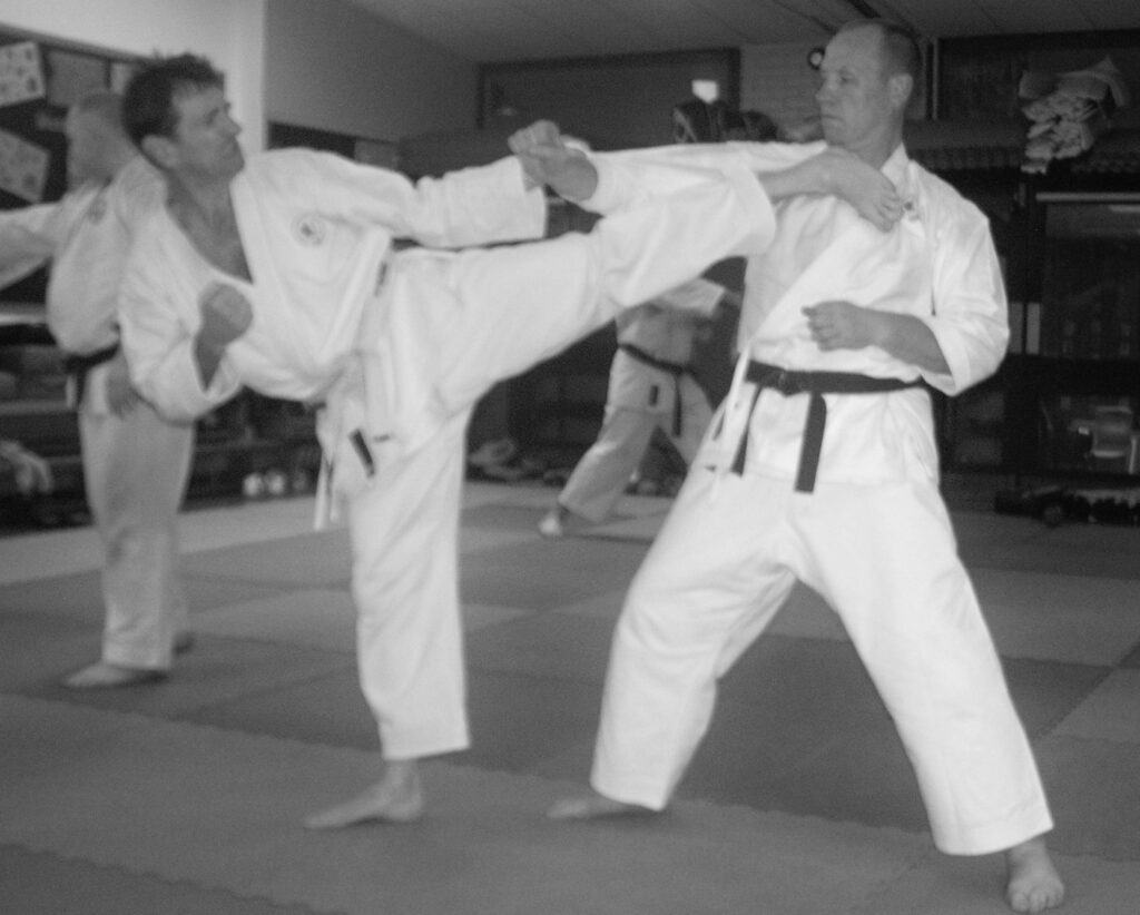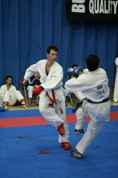 I was now coaching at Andy’s club and we continued to compete both as individuals and as part of the AMA squad. Meanwhile our penchant for practical, combative karate took us to an annual residential camp in Brecon, run by Martyn Harris and John Burke. Training with these guys centred around kata bunkai (analysis) and the exploration of application of kata to realistic conflict situations. I’ve written elsewhere that I don’t see a contradiction between “traditional” karate and sport and it’s certainly true that pursuit of medals and honours on the international veterans or masters circuit was a key driver for my motivation at that time. I’ve tended to be at the top end of fitness and speed for my age group, and the desire to test myself against my peers kept me in the dojo and gym into my fifties and beyond.